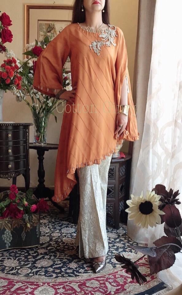 Asymmetrical Embroidered Shirt with Embroidered wide pants