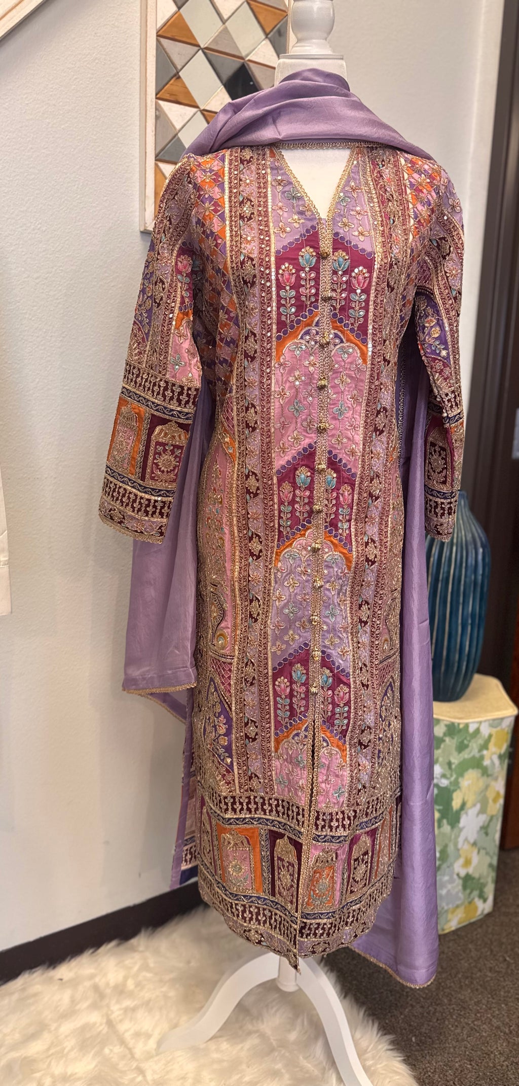 Light Yellow Chiffon Hand Worked Shadowed Embroidery Dress